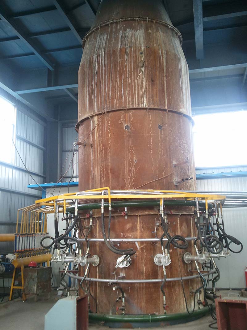竖窑介绍 由具有垂直轴线的钢外壳和耐火砖内衬组成的一种立式连续式窑炉,也按三带划分,使用温度1350℃-1950℃,用于烧制高 端耐火材料原料。通常使用液体或固体燃料,热效率高于隧道窑,节能效果明显,目前在国内高 端耐火材料行业使用广泛。